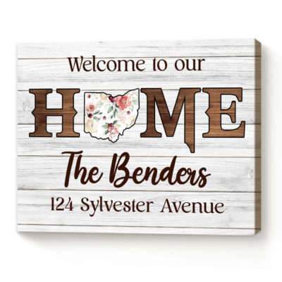 Personalized Welcome To Our Home Sign, Entryway Wall Decor, Custom State Map Gifts For Family
