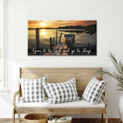 Give It To God and Go to Sleep Canvas, Large Wall Art for Bedroom Peaceful Lake Sunset