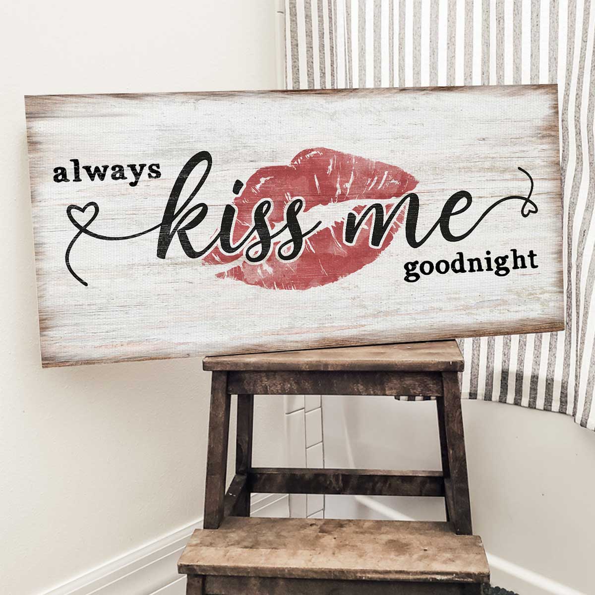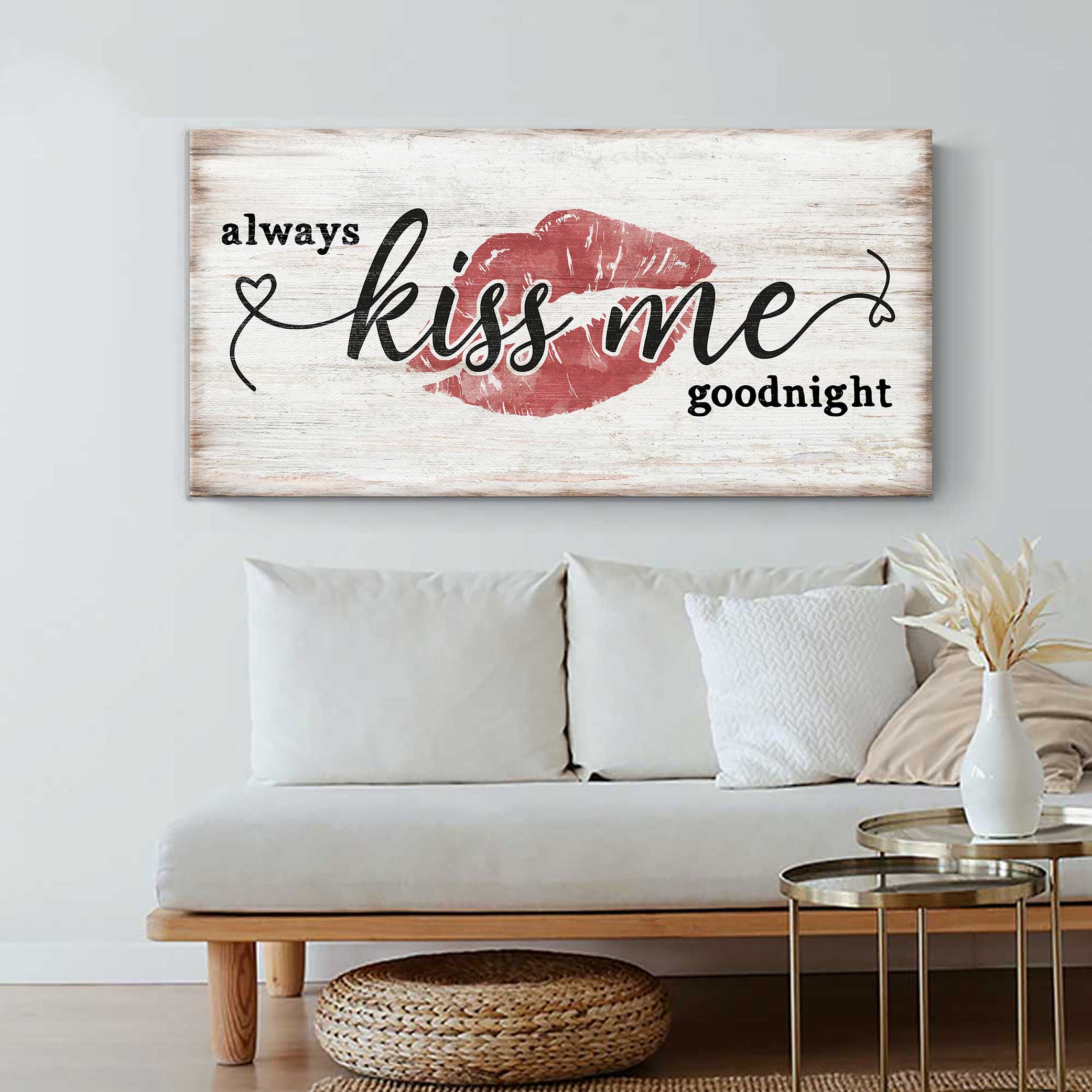 Always Kiss Me Goodnight Premium Canvas, Farmhouse Bedroom Wall Art, Master Bedroom Decor, Wedding Gift