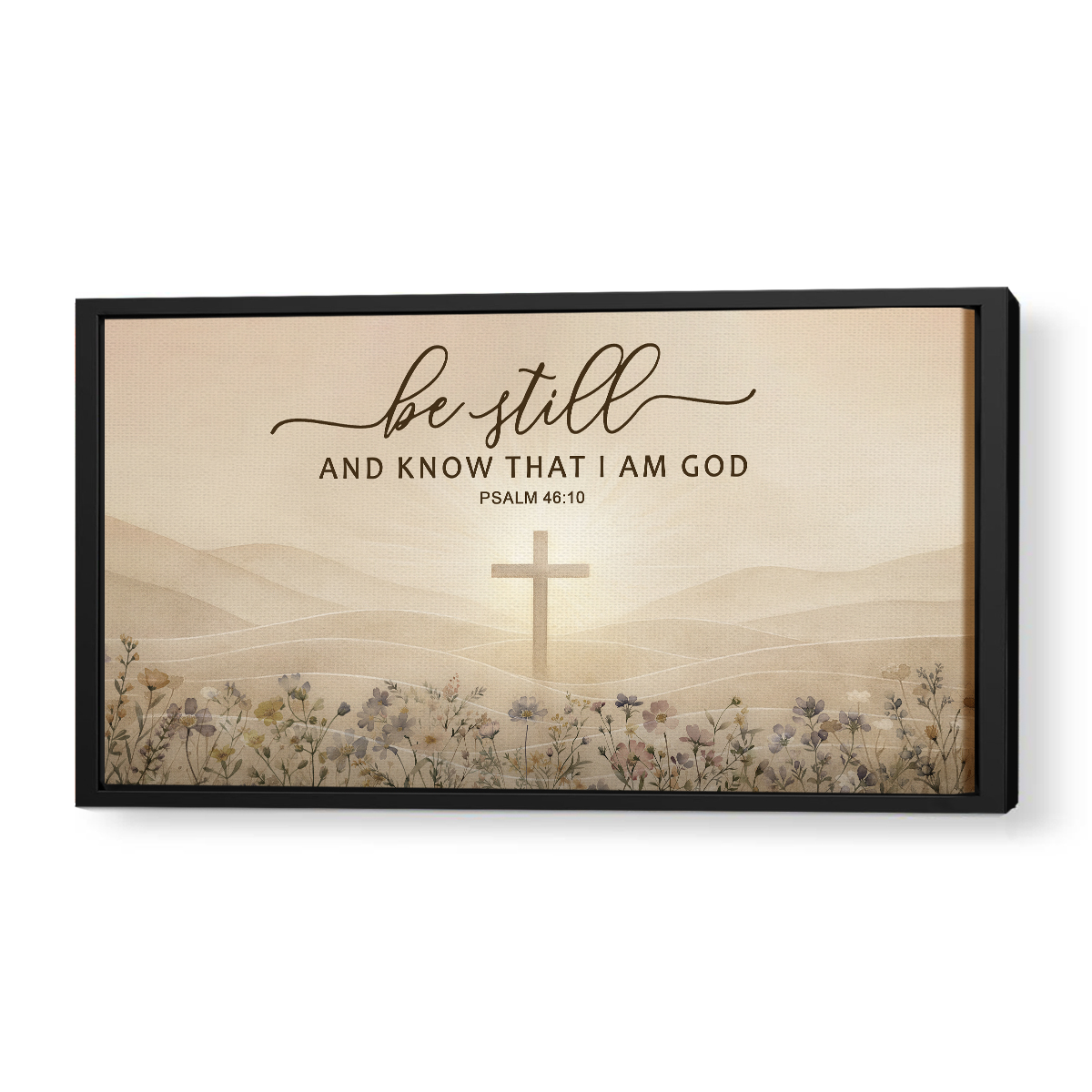 Whether you are looking for the ideal gift for a loved one or a meaningful addition to your home decor, this canvas art makes for a heartfelt choice. Elevate your space and inspire conversations of faith with this radiant depiction of spiritual tranquility. Embrace the moment, be still, and let the reassuring words of Psalm 46:10 fill your home with divine peace.