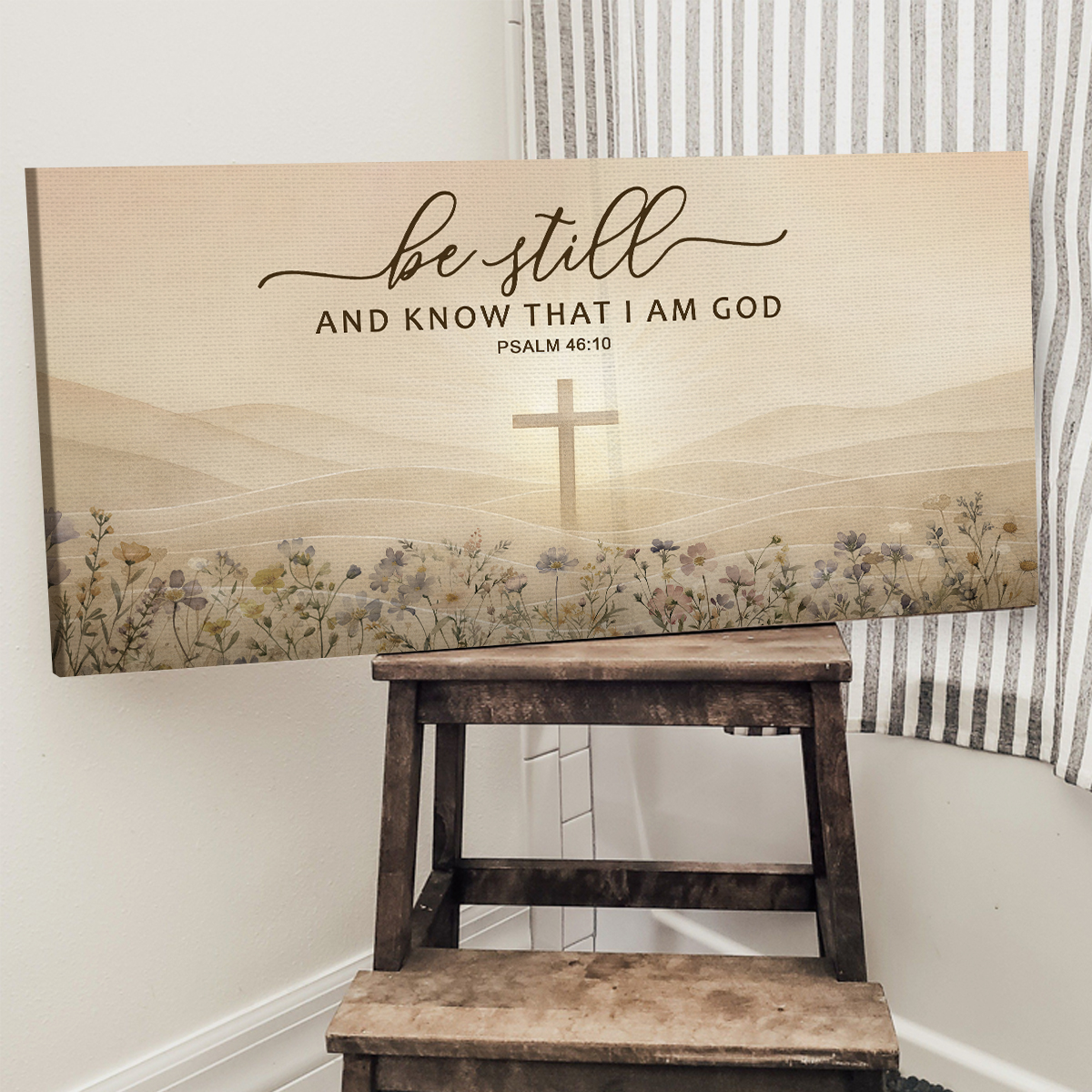 Be Still And Know That I Am God – Psalm 46:10 Large Canvas, Christian Cross Canvas Wall Art, Farmhouse Scripture Wall Decor, Christian Home Decor