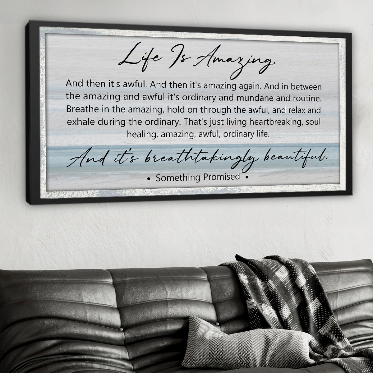 Life Is Amazing Wall Art, Emotional Inspirational Quote Canvas, Modern Farmhouse Decor, Beach Landscape Large Canvas