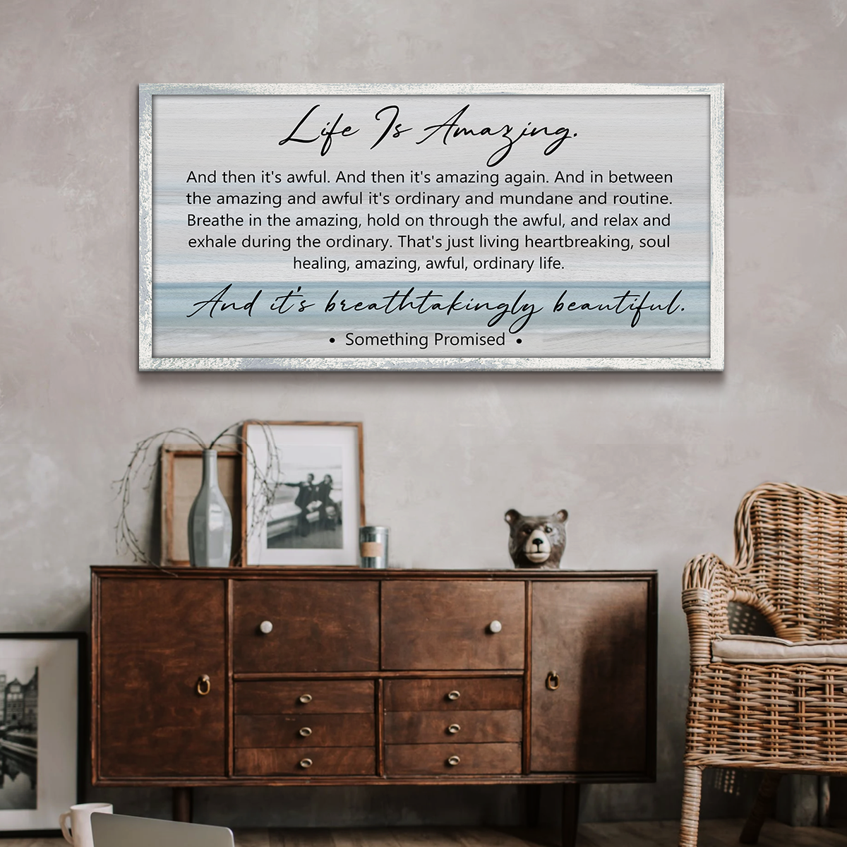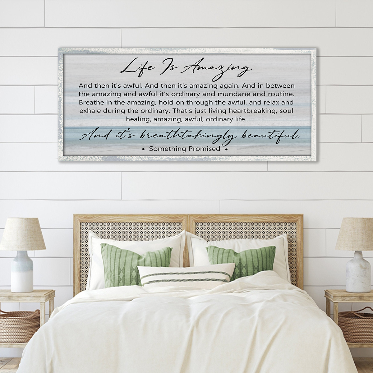 Life Is Amazing Wall Art, Emotional Inspirational Quote Canvas, Modern Farmhouse Decor, Beach Landscape Large Canvas