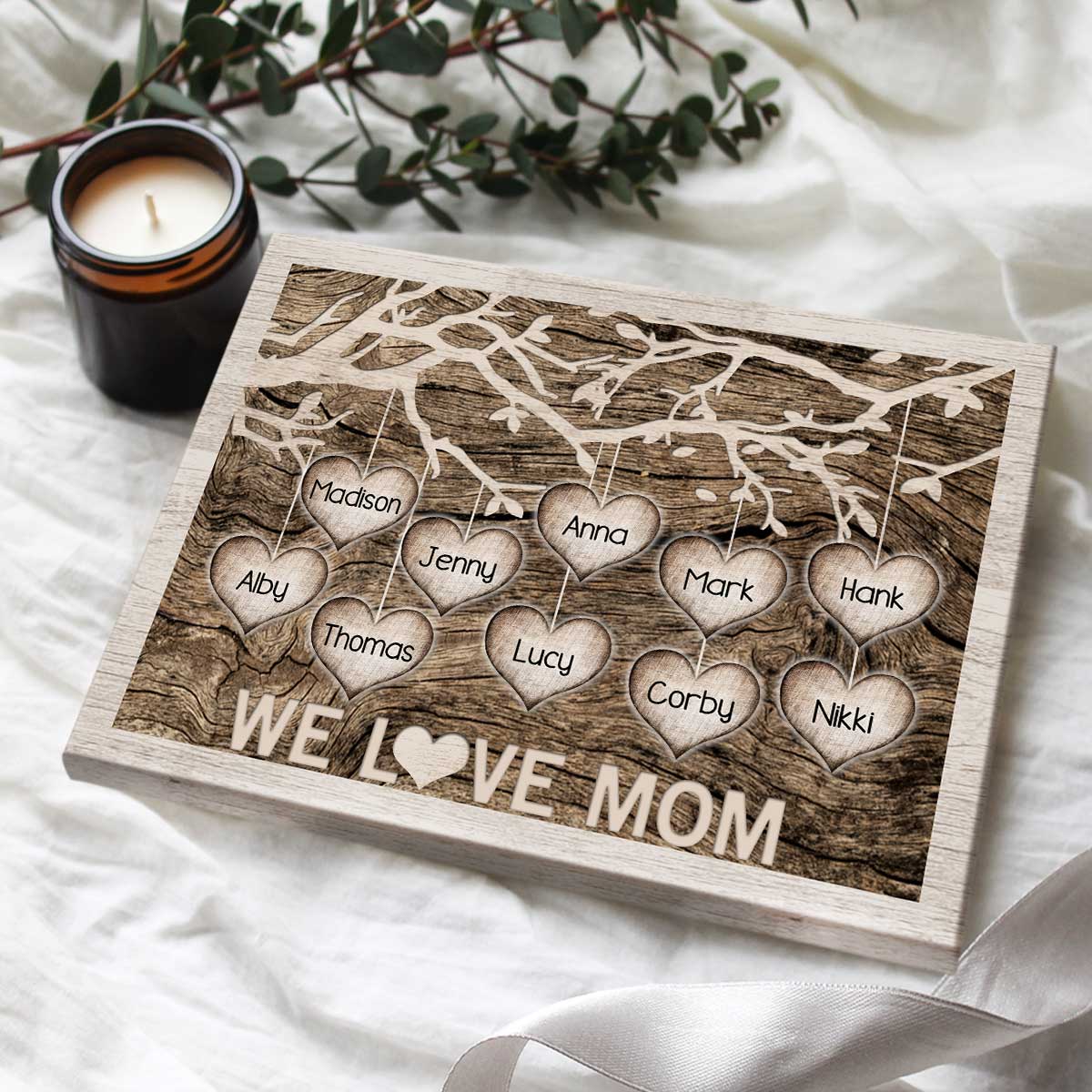 If you’re looking for something different that stands out from other Mother’s Day gifts, the Mom We Love You Sign with Kids Names will truly demonstrate your family bond. Constructed with lasting quality materials, and featured with family tree design, this memorable present will be cherished by motherly figures everywhere for years to come! Get yours today – let’s celebrate mom!